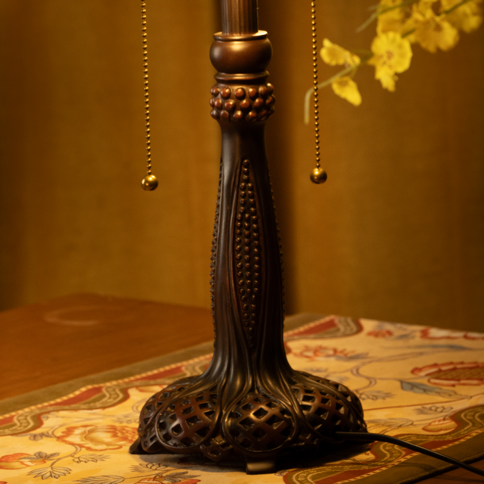 Shade Material: Handcrafted Stained Glass in Amber Tones
