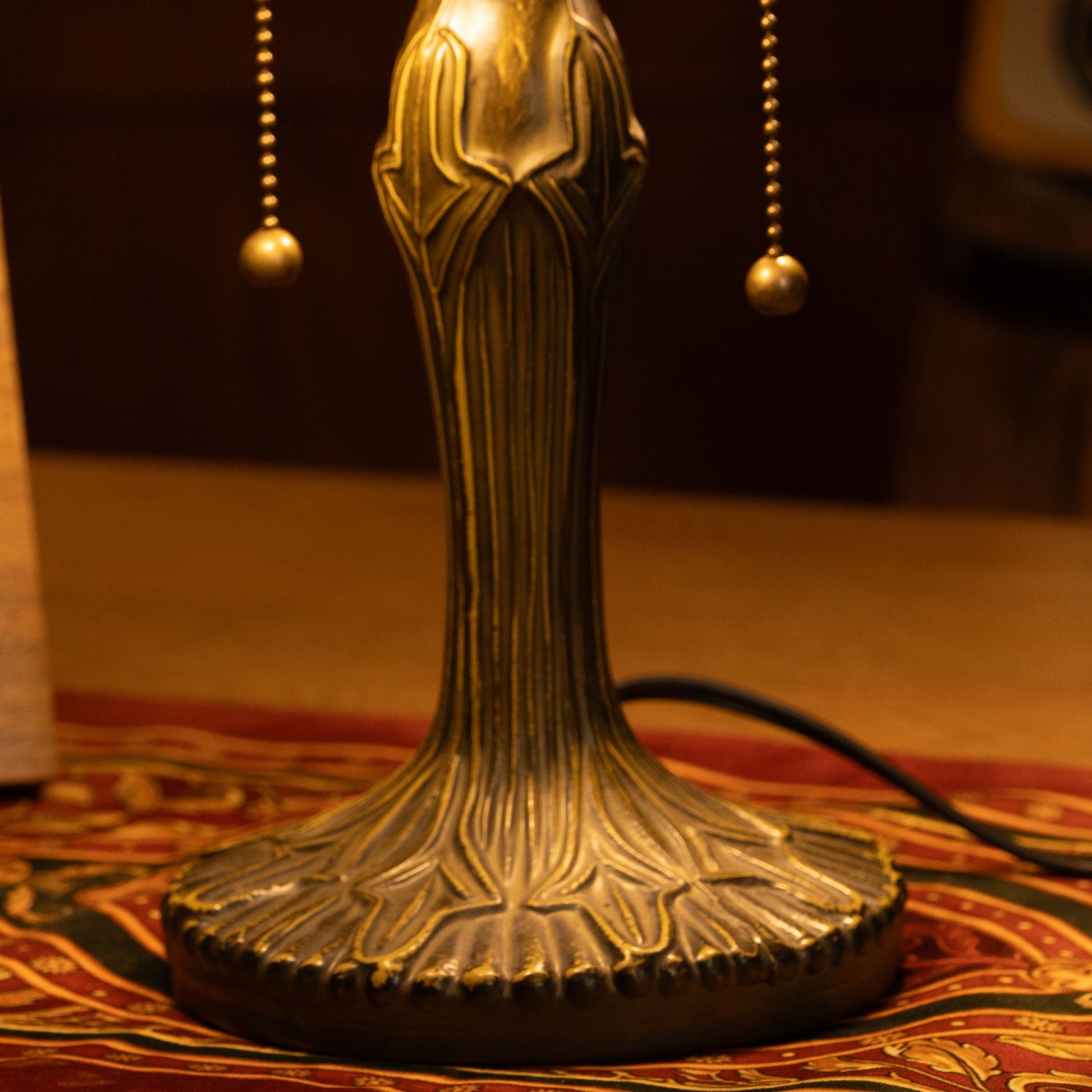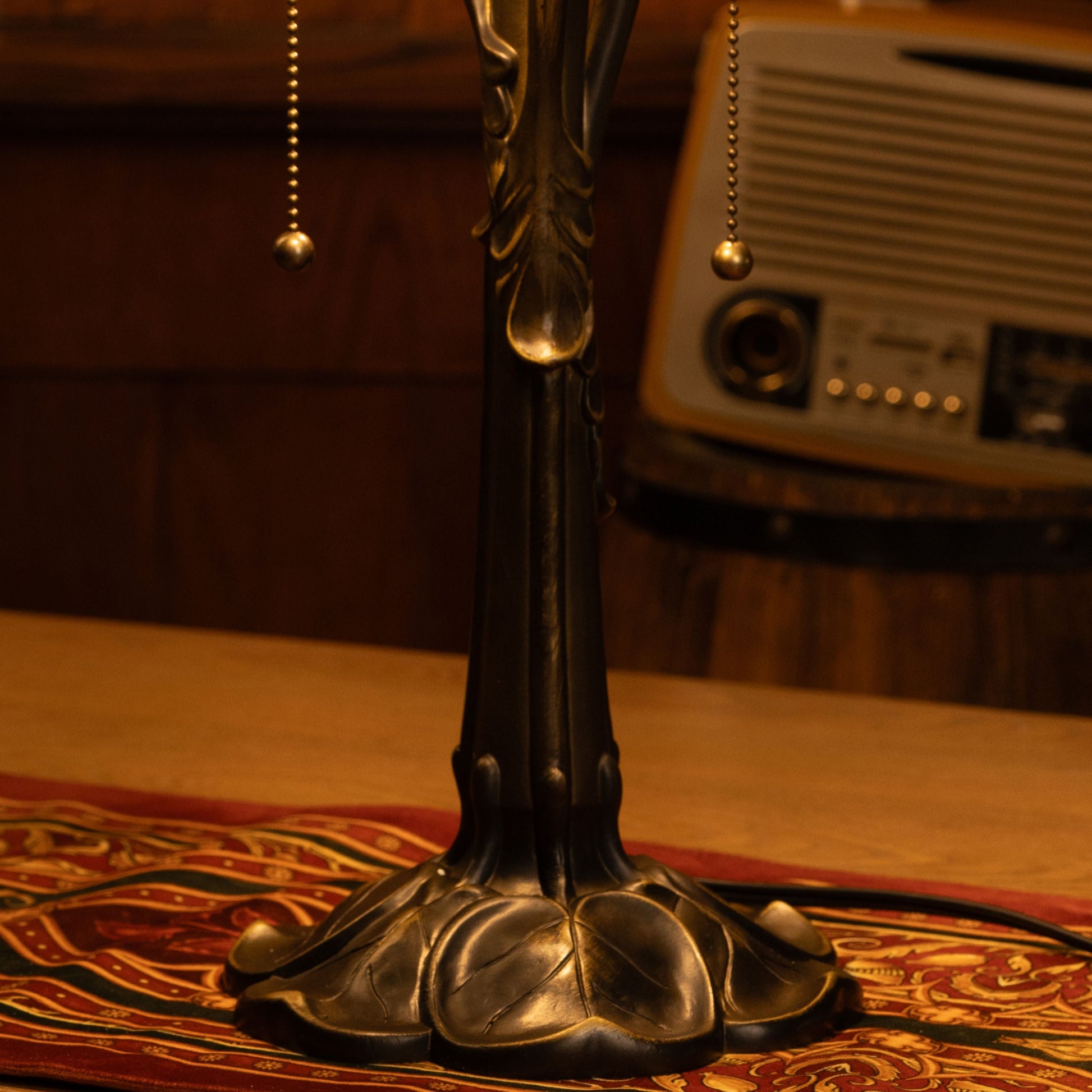 The sculpted antique bronze base complements the floral shade with a classic vintage touch. Whether styled in a farmhouse nook or a cozy reading corner, the lamp adds gentle elegance and visual warmth.