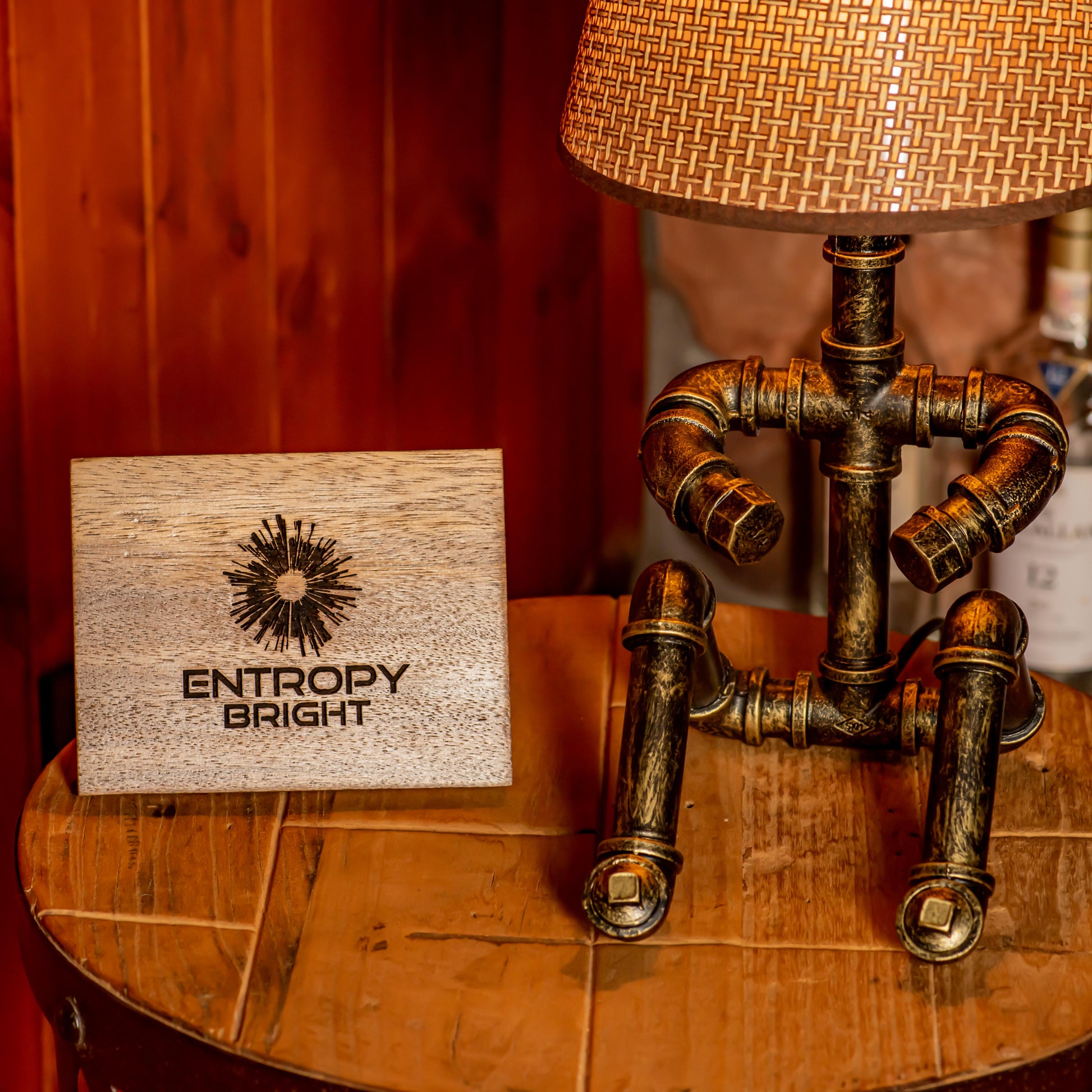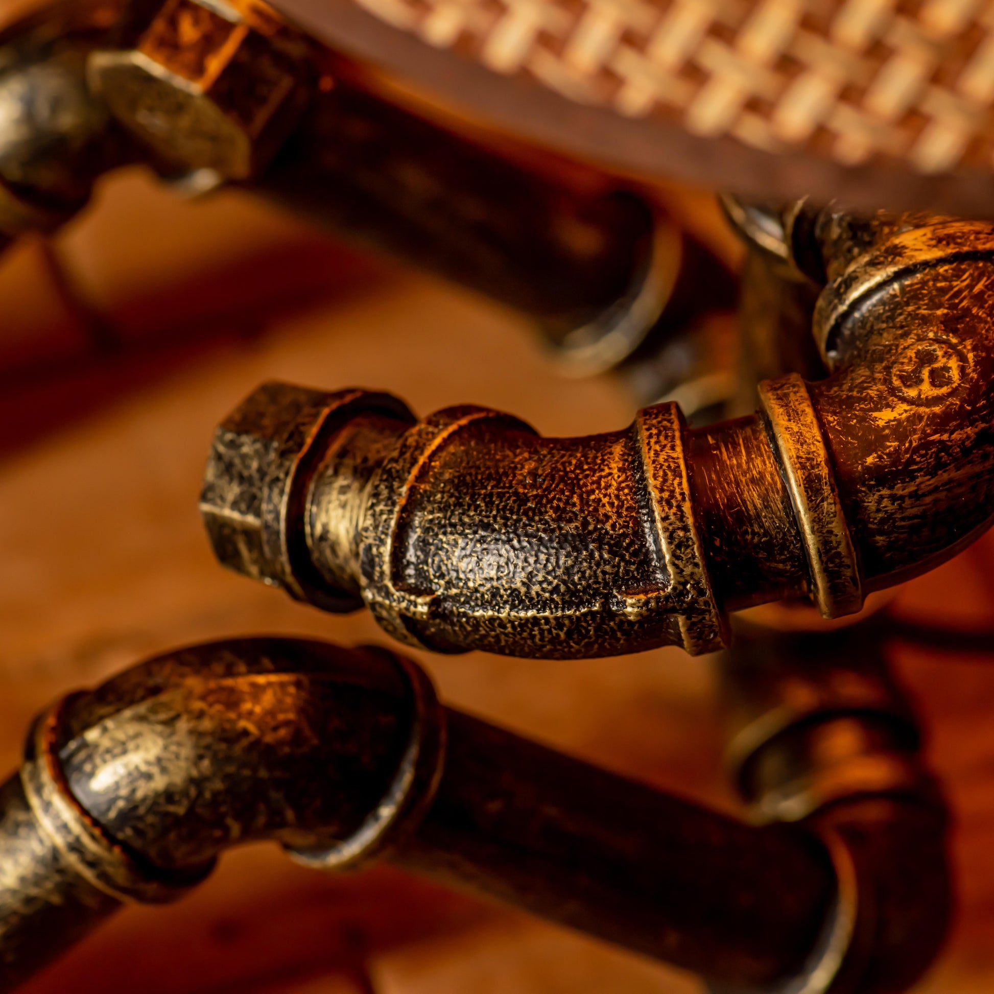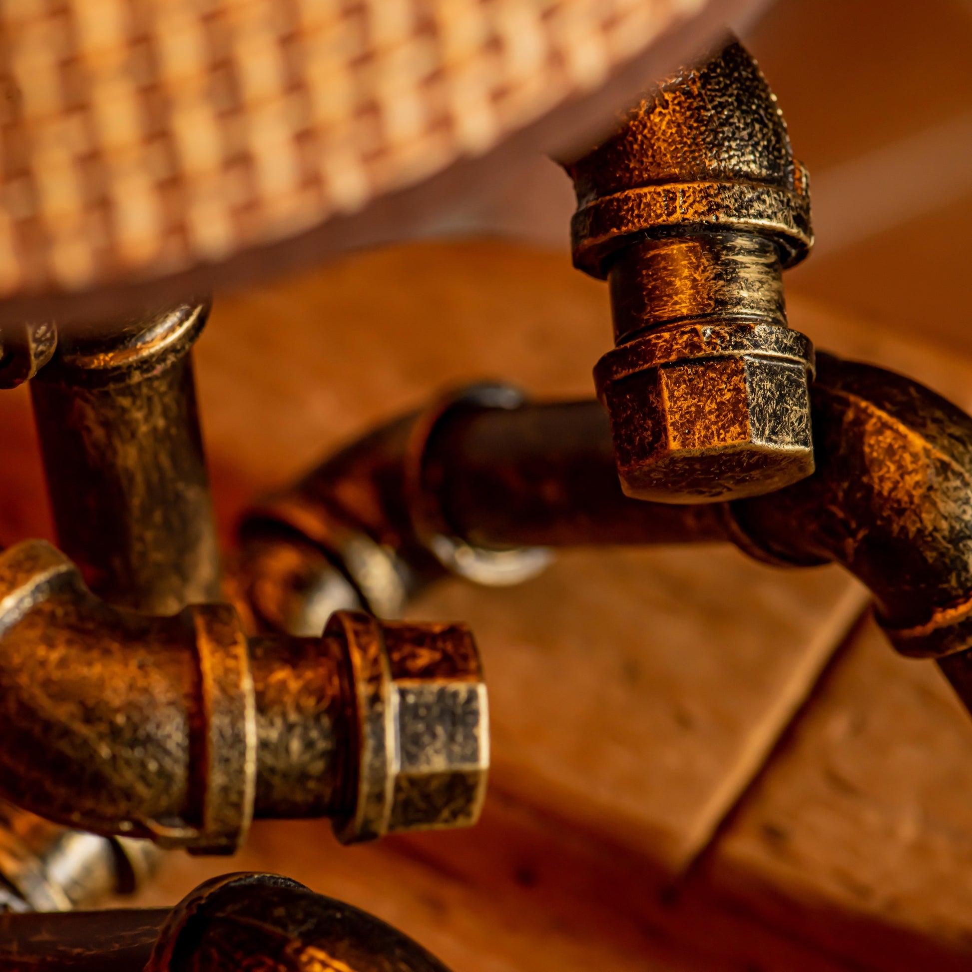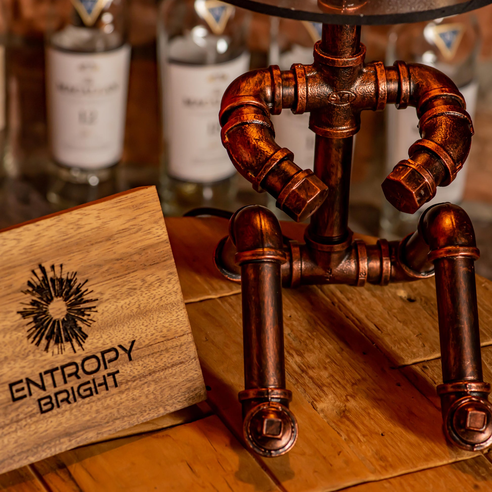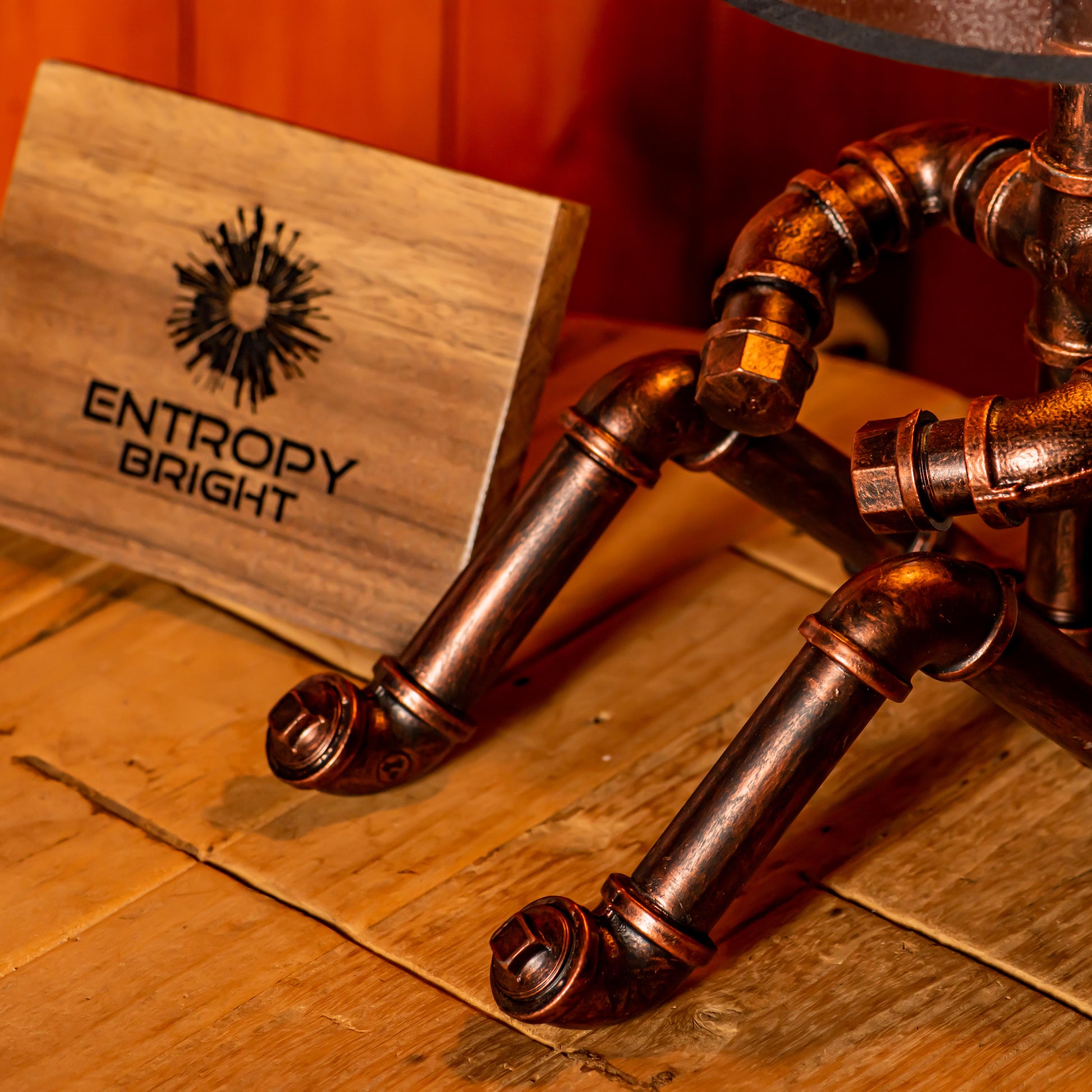 Constructed from 1/2" malleable cast iron pipes, this robot-style table lamp captures the essence of steampunk design. Its exposed hardware and antique finish lend it a rugged charm, ideal for adding personality to eclectic or industrial-themed spaces.