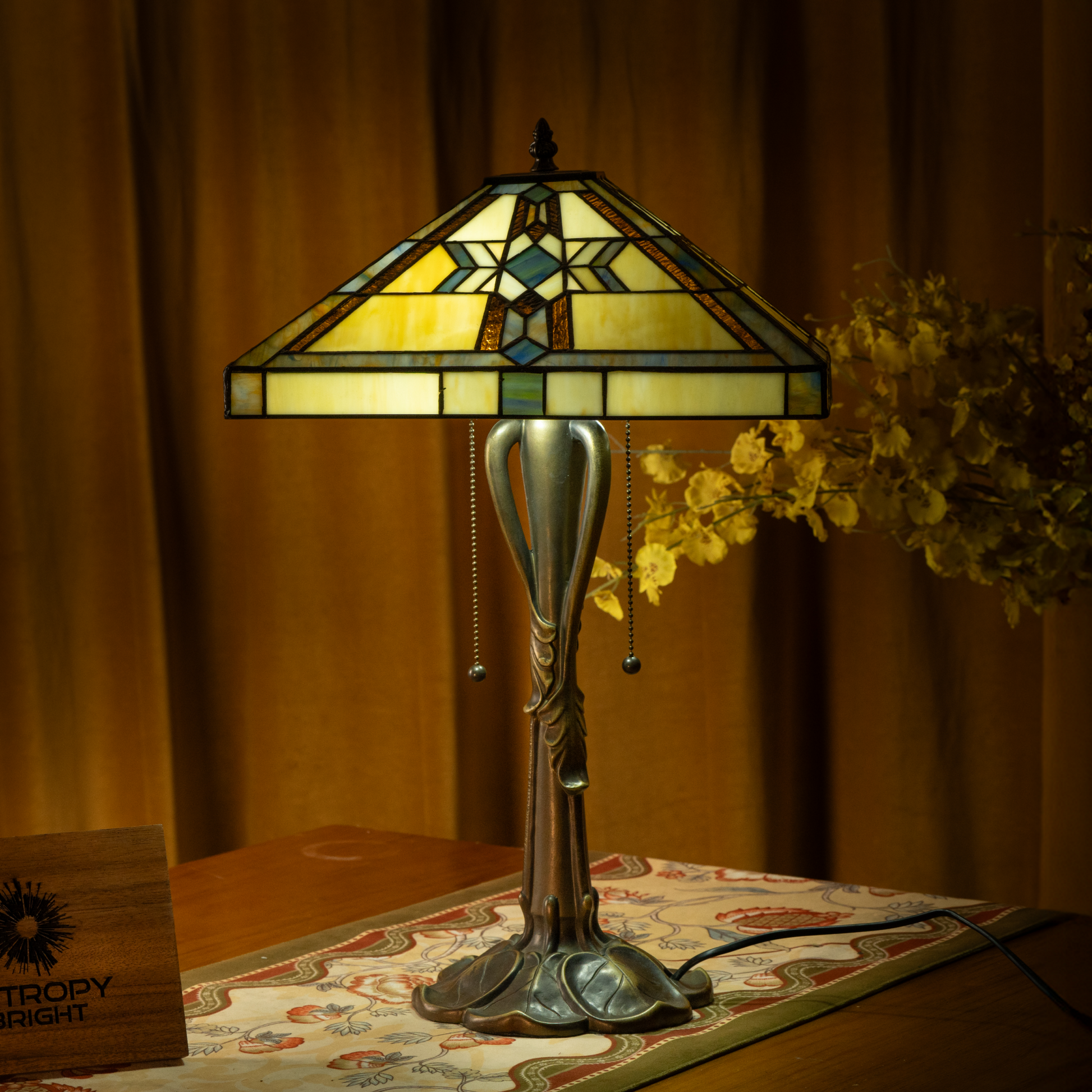 Whether chosen in a floral, geometric, or modern style, this lamp brings a sophisticated accent to bedrooms, living rooms, or office spaces—blending timeless elegance with everyday function.