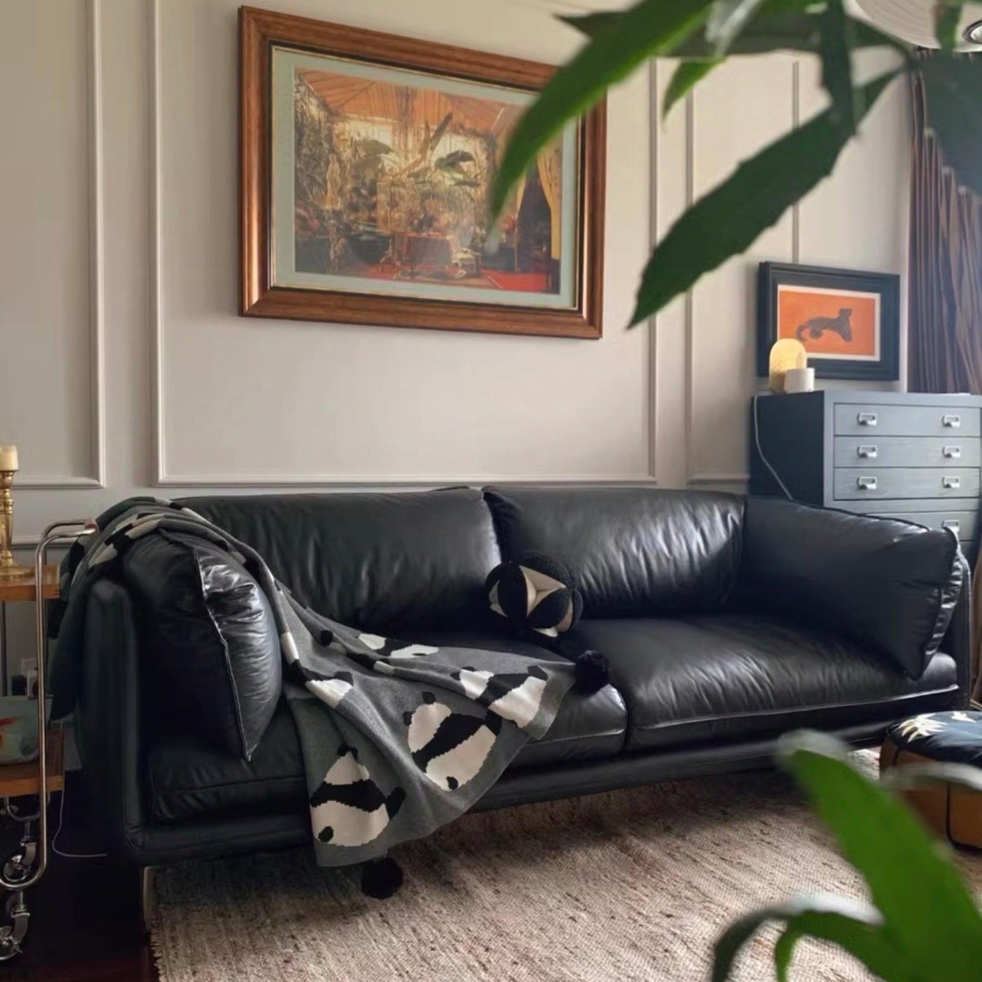 Refined yet inviting, this Italian-inspired minimalist sofa features 360° full-body Brazilian top-grain oil-waxed leather, delivering a rich, vintage patina that softens beautifully with time. Its clean lines and substantial form make it a sophisticated focal point for modern living rooms.