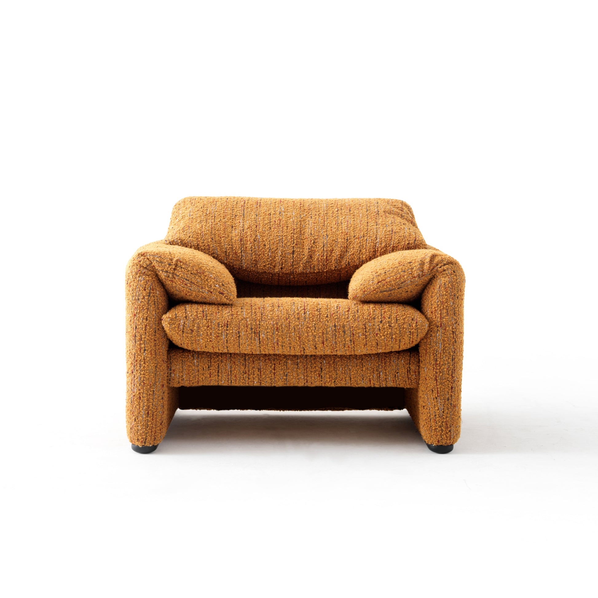Now deeper at 105cm, the Maxi model amplifies lounge appeal while retaining its classic architectural form. Wide seat cushions and low arms create a generous, inviting feel without overwhelming the space.