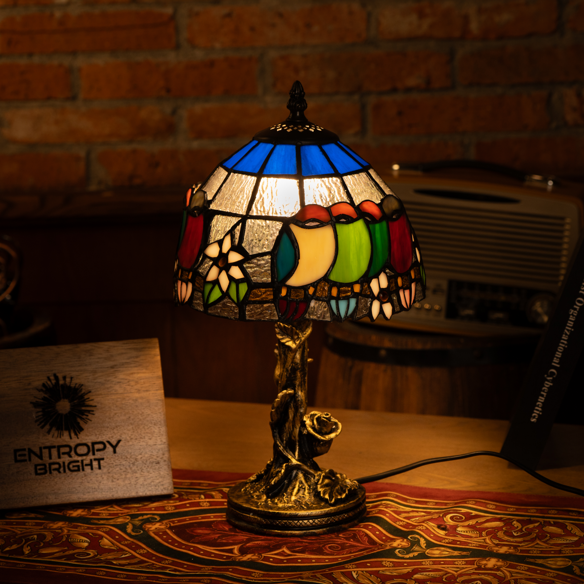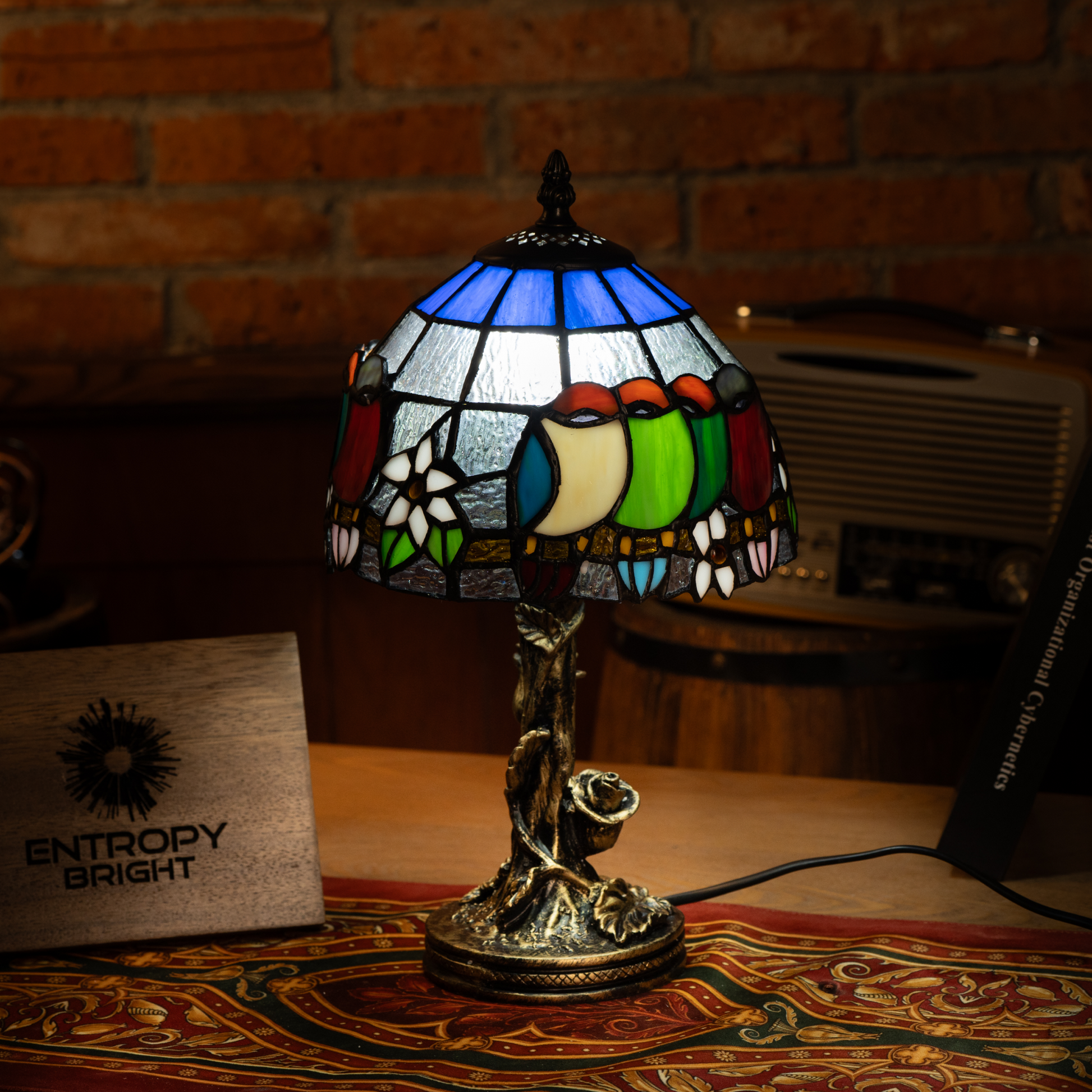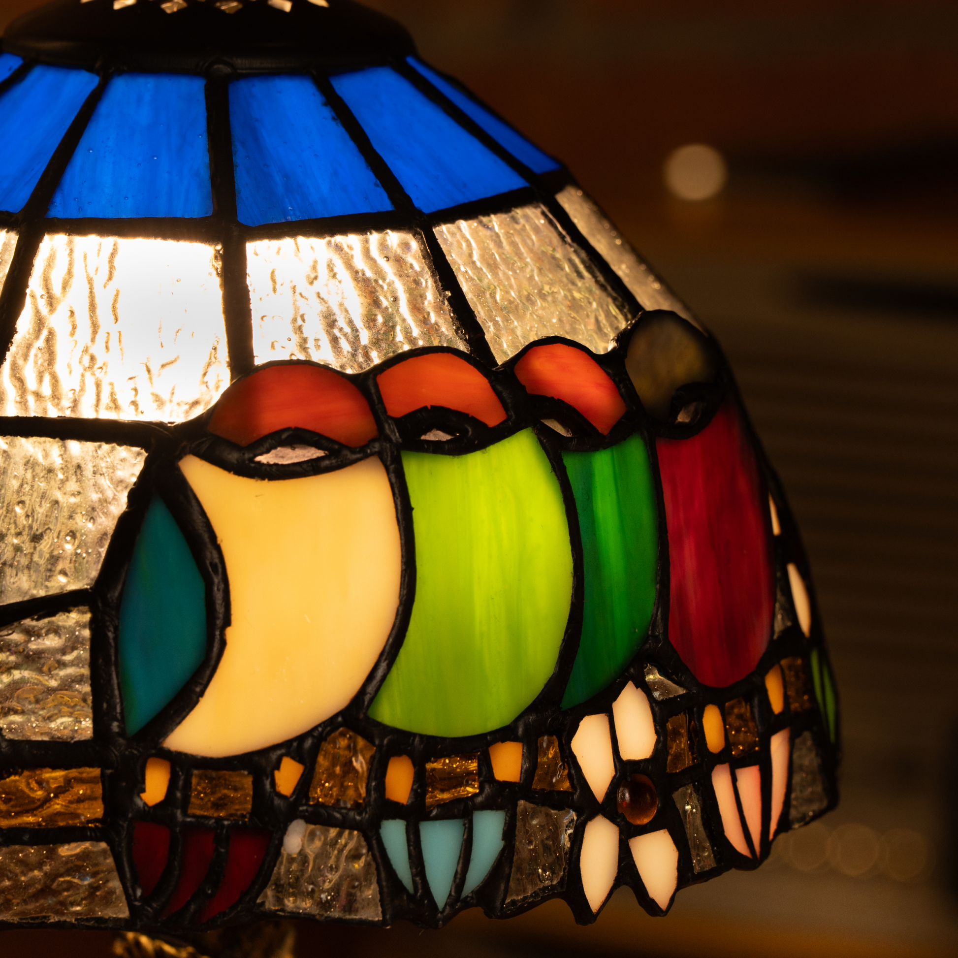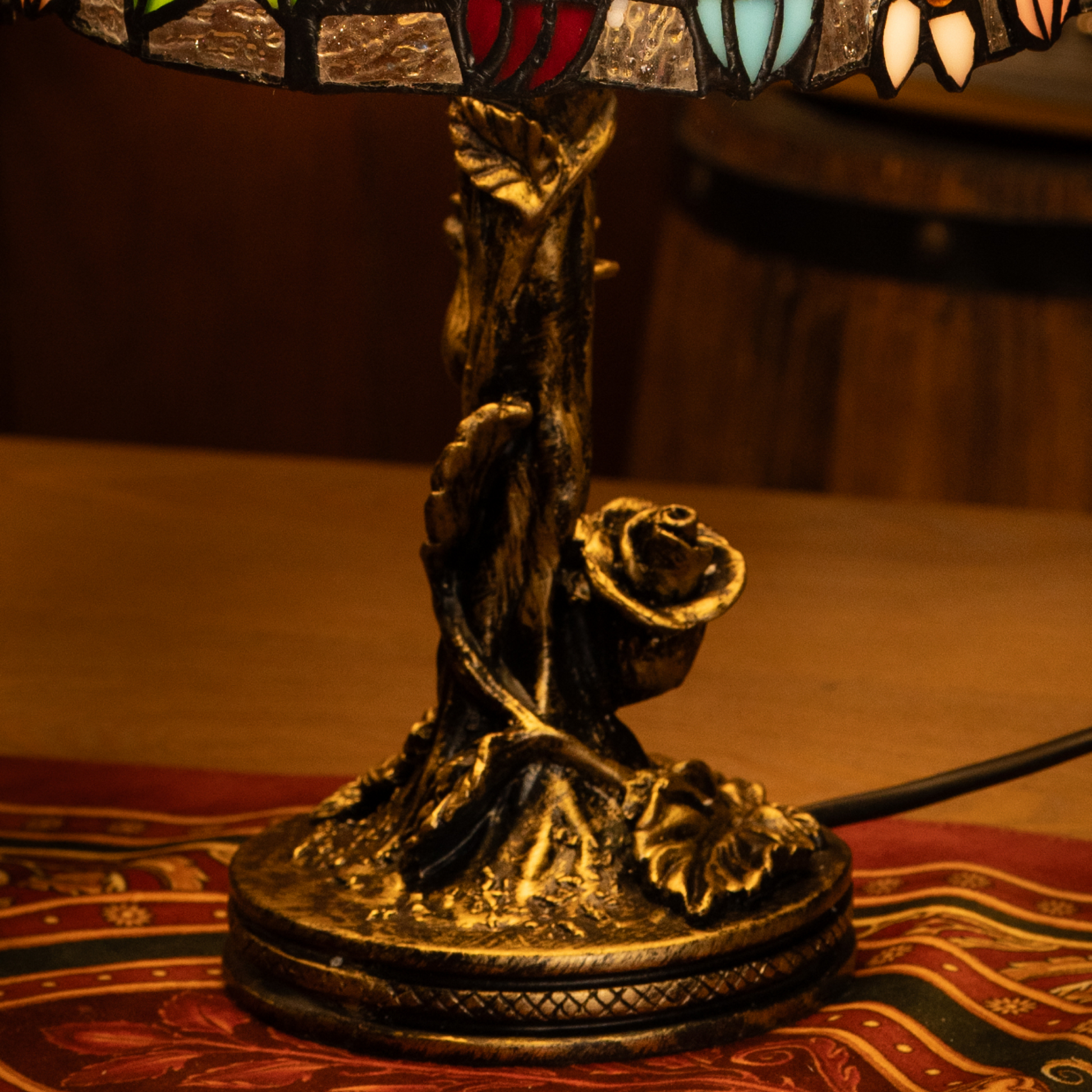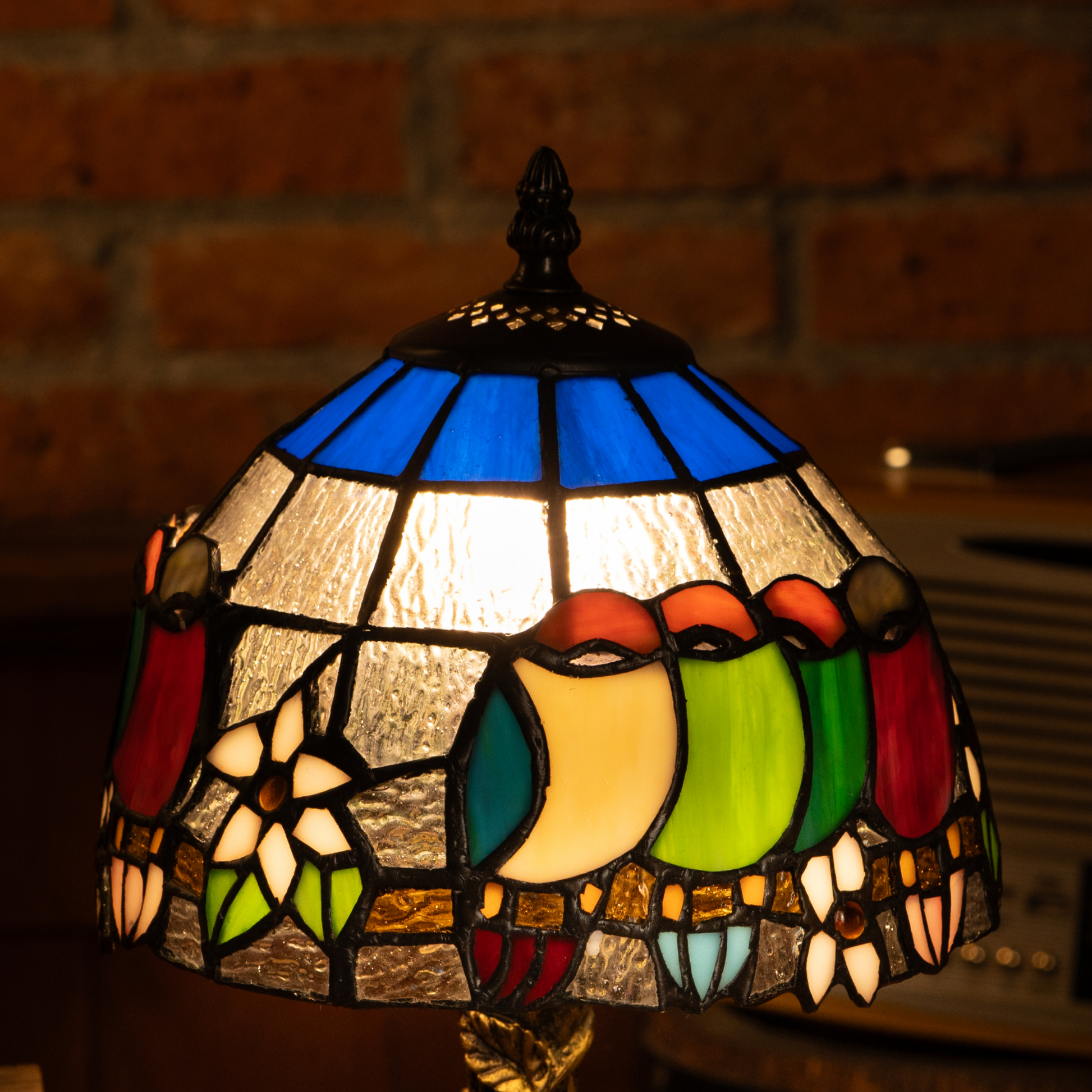 Supported by a vintage-style bronze base, the lamp balances classic Tiffany elegance with a joyful, modern color palette—perfect for eclectic, cozy, or farmhouse-inspired homes.