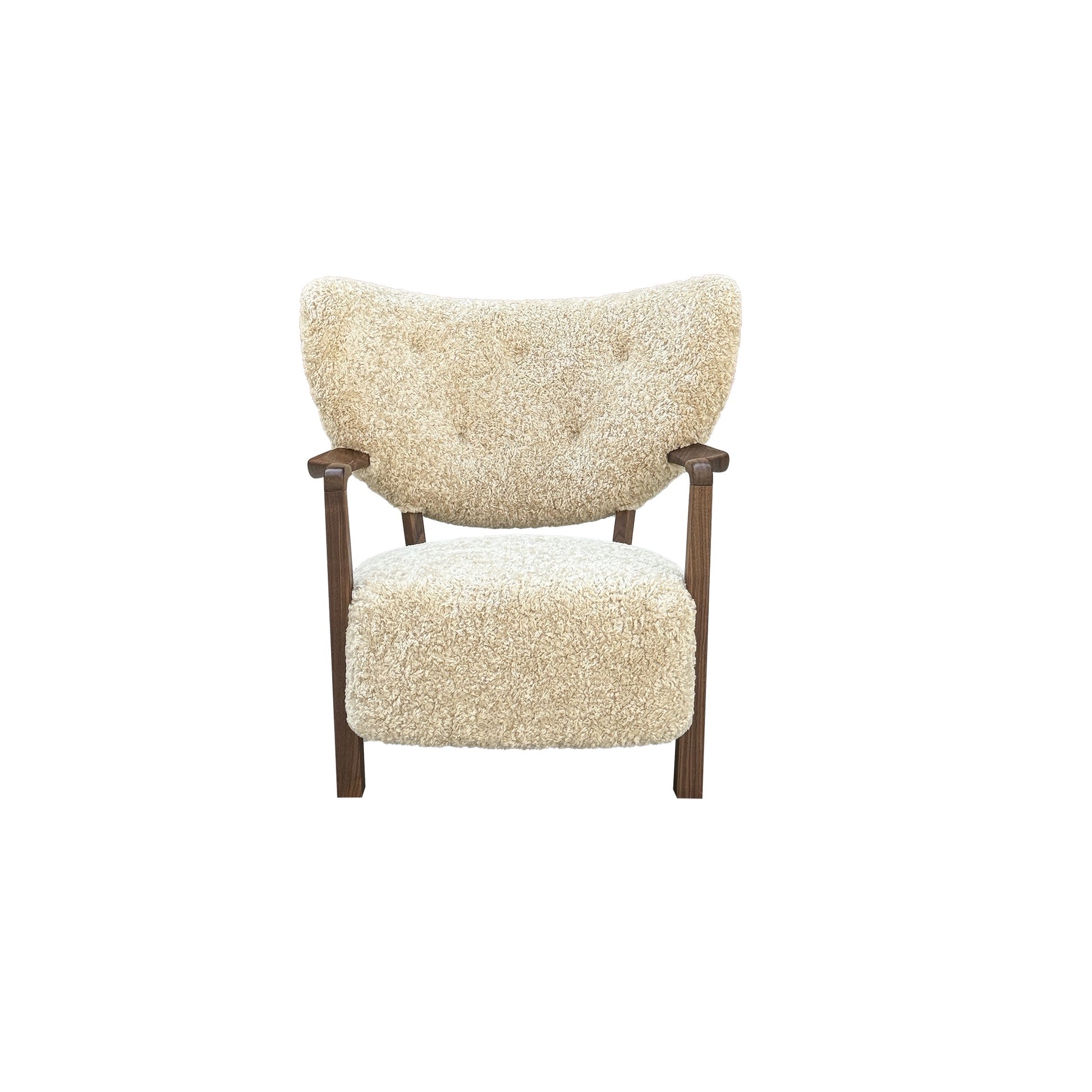 The Wulff Chair and Ottoman Set captures the sculptural essence of mid-century French design with a distinctly modern refinement. Wrapped in textural fabric upholstery and handcrafted from solid walnut, it speaks to the artistry of form, comfort, and tactile beauty.